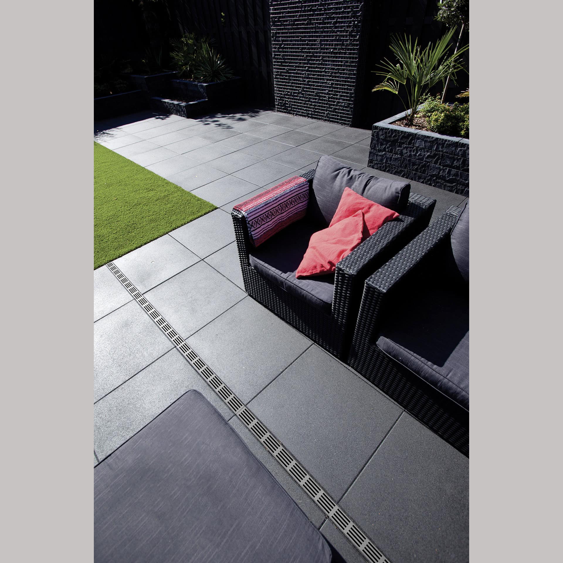 aus Kunststoff mit Aluminiumrost, Klicksystem zur Anbringung von Stirnwänden,