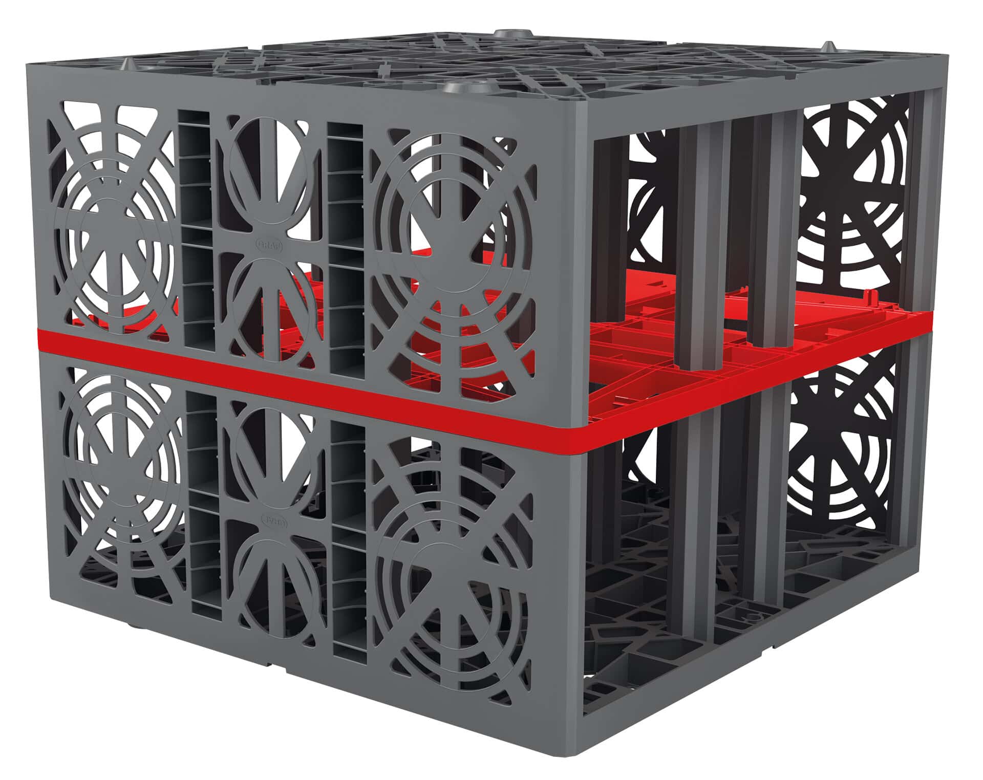 bestehend aus EcoBloc Inspekt 420, 4 Endplatten, Verbindungselementen, Entlüftungsabschluss DN110 undGRAF-Tex Geotextil, B x H 80 x 66 cm